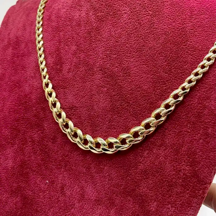 Gurmet Zincir 14 Ayar Altın üzerine işlenmiştir. Toplam 17.74 gram ve 55 cm dir. Süzme Gurmet zincir diye adlandırdığımız ürün orta kısmı daha kalın diğer kısımlar daha incedir. İstenilen ölçüde ayarlanması için bizimle iletişime geçebilirsiniz. Ürünlerimizde el işçiliği olduğu için belirtilen ağırlıkta (+/-) %10 sapma oluşabilmektedir. Ürün ile gönderilen kartta ürüne ait gerçek değerler belirtilmektedir. Ürün sigortalı şekilde gönderilecektir.