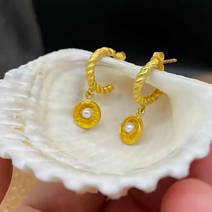 Görseldeki ürün bir çift küpe olup 5,80 gram civarıdır. 1,57 gram kadarı 18 ayar (kilit kısmı) 4,23 gramı 24 ayar saf altındır.