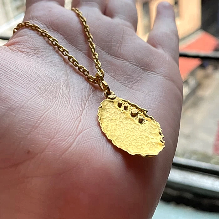 Görseldeki ürün sadece kolye ucu 5-6 gramlık 24 Ayardır. El yapımı olduğu için gramlarda %10 oynama olabilir. Tamamen elde yapılan bu ürün saf altından ( 24 ayar) başka maden içermemektedir.