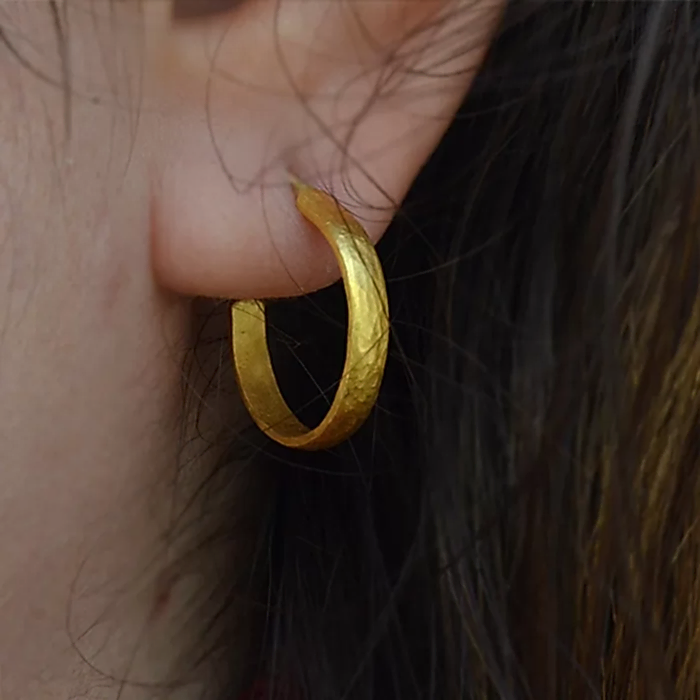 Görseldeki ürün 4,90 gramlık 24 Ayar Küpedir. Tamamen elde yapılan bu ürün saf altından ( 24 ayar) başka maden içermemektedir.